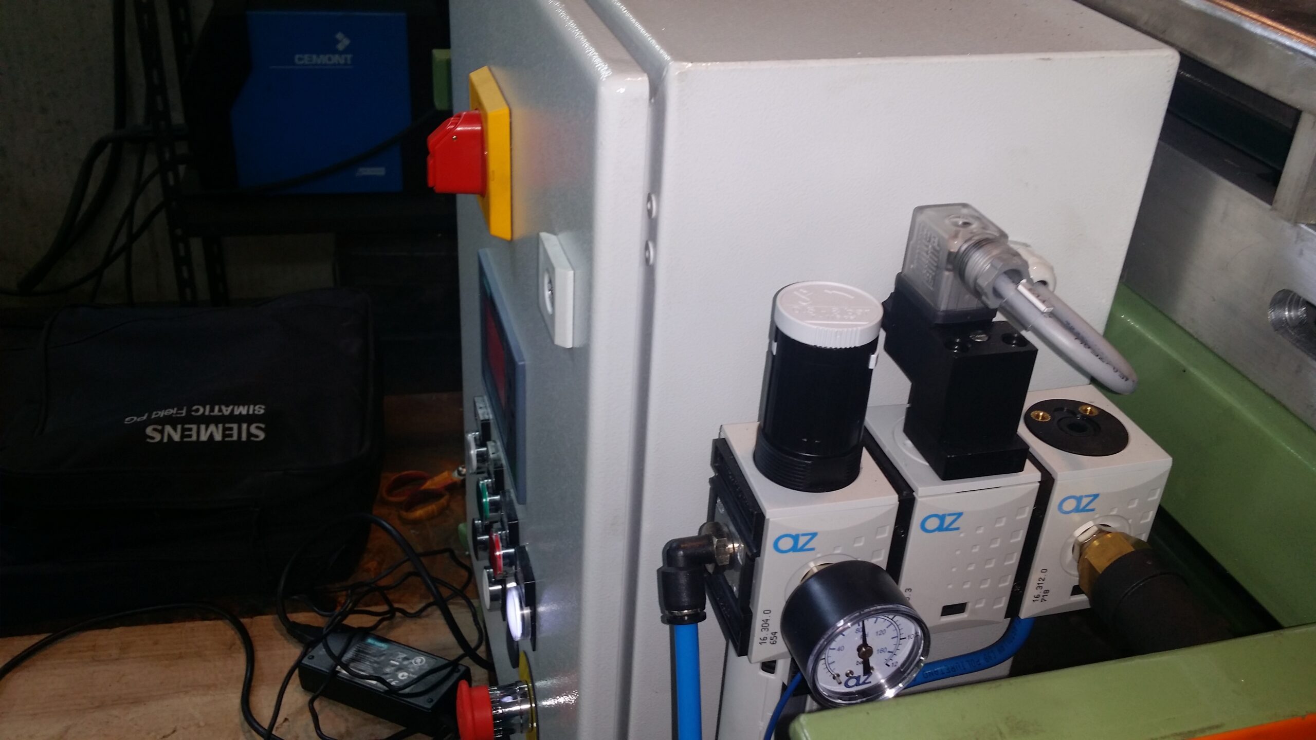 Quadro elettrico con logo Siemens per gestire nastro scarico macchina utensile.